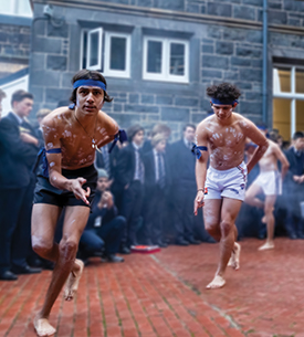 Eight Indigenous students performed traditional Indigenous dances at each campus during Reconciliation Week this year. Pictured are Year 10 students Preston Cockatoo-Collins (left) and Ariki Lowe.